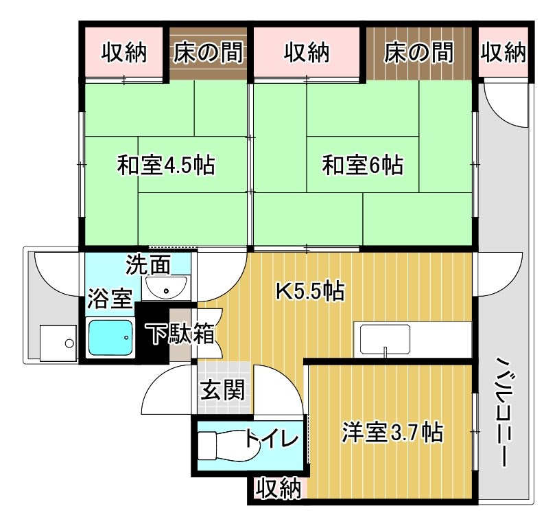 屋外駐車場 2F以上 ガス給湯 3点給湯 収納3ヶ所